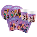 Include 88 articoli:  24 piatti (Ø 18 cm),  24 bicchieri (200 ml) e  40 tovaglioli decorati K-Pop Demon!
