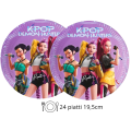 Kit Compleanno Tavola K-Pop Demon Hunters 24 persone (88 pezzi: 24 piatti 18cm, 24 bicchieri 200ml, 40 tovaglioli) in carta