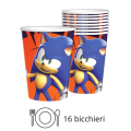 Include 52 articoli:  16 piatti (Ø 18 cm),  16 bicchieri (200 ml) e  20 tovaglioli decorati Sonic!