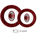Kit Festa di Compleanno Milan 16 Persone  (16 Piatti ⌀ 18 cm, 16 Bicchieri di Carta 250 ml, 20 Tovaglioli 33x33 cm)