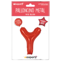 Palloncino lettera Y rosso metal realizzato in polietilene. Grandezza palloncino 35cm. Gonfiabile ad aria con l'apposita pompa o con la cannuccia all'interno della confezione. Personalizza il tuo party!