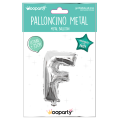 Palloncino lettera F argento metal realizzato in polietilene. Grandezza palloncino 35cm. Gonfiabile ad aria con l'apposita pompa o con la cannuccia all'interno della confezione. Personalizza il tuo party!