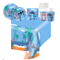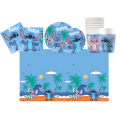 Kit Festa di compleanno a tema Stitch, da tavola (8 piatti 23cm, 8 piatti 20cm, 20 tovaglioli, 1 tovaglia, 8 bicchieri)