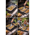 Realizzate in acciaio inox 430 resistente alle alte temperature, le teglie BBQ sono robuste, durevoli e adatte a barbecue a carbone, gas o elettrici. Ideali per grigliare verdure, gamberi, pesce, carne e contorni senza sporcare la griglia.