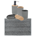 Set da Bagno Completo Grigio – Dispenser, Portaspazzolino, Bicchiere, Portasaponetta e Tappeto Coordinato
