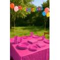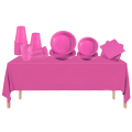 Set Stoviglie Fucsia in Plastica Riutilizzabile Dura – 145 Pezzi - 25 Piatti Dessert 17 cm, 20 Piatti Piani 22 cm, 50 Bicchieri, 50 Tovaglioli, 1 Tovaglia 137x274cm – Prodotto riutilizzabile