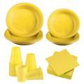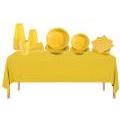 Set Stoviglie Plastica Riutilizzabile Giallo – 145 Pezzi - 25 Piatti Dessert 17 cm, 20 Piatti Piani 22 cm, 50 Bicchieri,  50 Tovaglioli, 1 Tovaglia 137x274cm – per Feste, Compleanni e Picnic