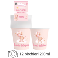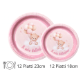 Set Tavola Battesimo bambina Rosa (48 pezzi: 12 Piatti 23cm, 12 Piatti 18cm, 12 tovaglioli, 12 bicchieri)