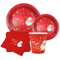 Set tavola di Babbo Natale - Stoviglie in carta natalizia - 12 piatti 23cm, 12 piatti 18cm, 12 bicchieri, 12 tovaglioli, Tema Natale Rosso e Oro per Feste, Tavola Natalizia e Party